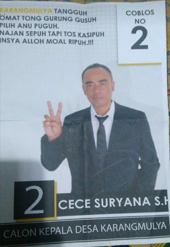 yang terpenting ialah menepikan kepentingan golongan atau kelompok. Karena menjadi Kepala Desa yang memilih ialah masyarakat desa Karangmulya sendiri.