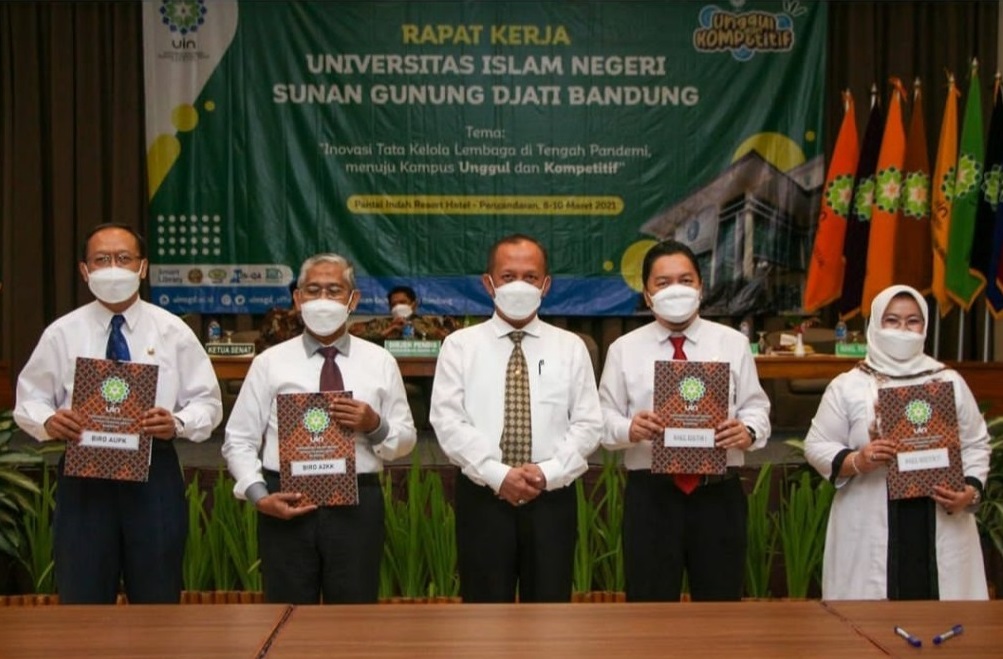 Ajakan Rektor ini tercetus dalam sambutan rapat kerja (raker) “Inovasi Tata Kelola Lembaga di Tengah Pandemi, menuju Kampus Unggul dan Kompetitif” di Pangandaran, (08/03/2021). Raker dihadiri oleh Sekjen Kemenag RI, Prof Nizar; Direktur Jenderal Pendidikan Islam Kemenag RI, Prof M Ali Ramdhani; dan Bupati Pangandaran Jeje Wiradinata.
