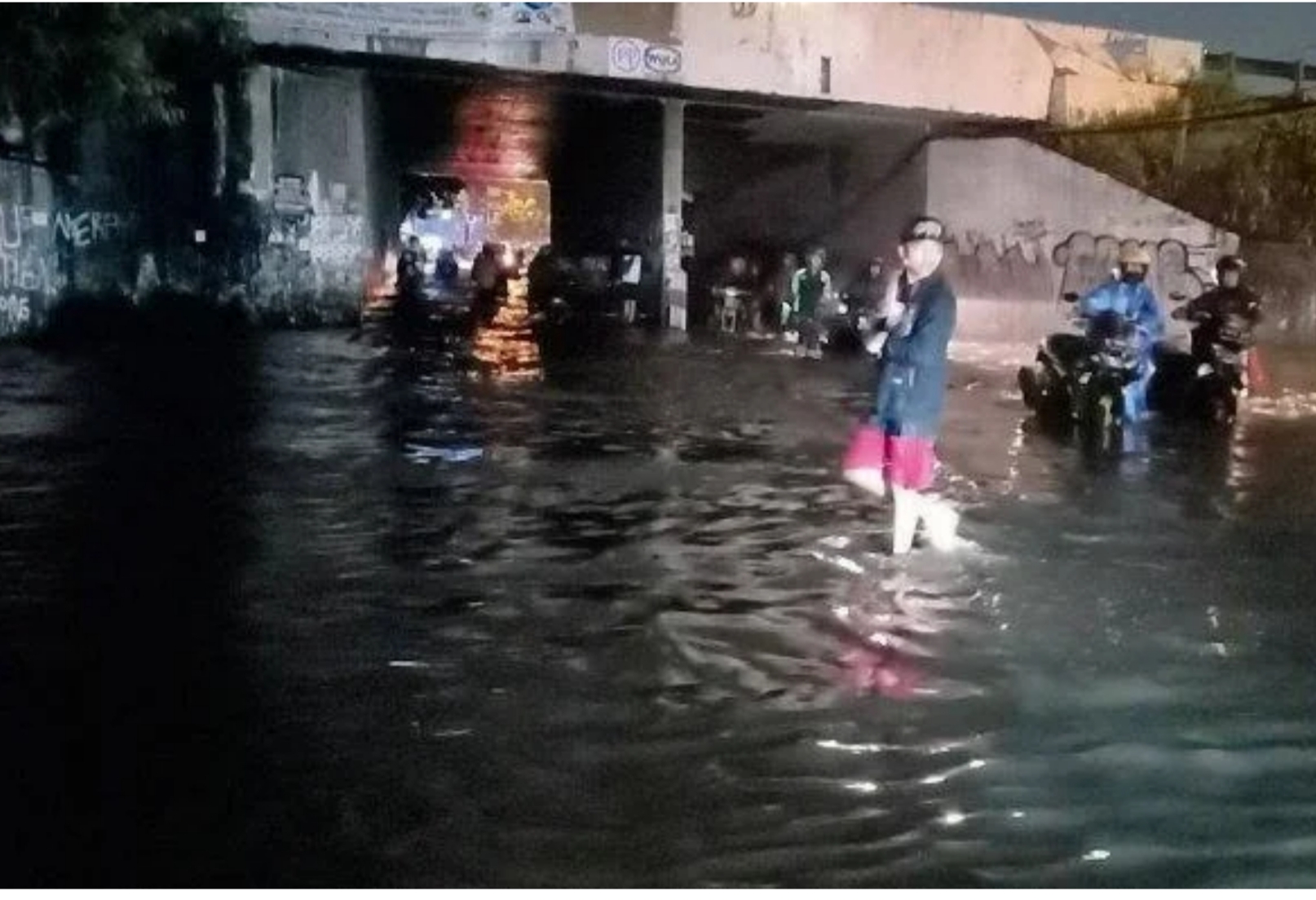 Banjir di bawah jembatan tol Cibaduyut perbatasan Kota dan Kabupaten Bandung, Kamis (24/12/2020) malam.