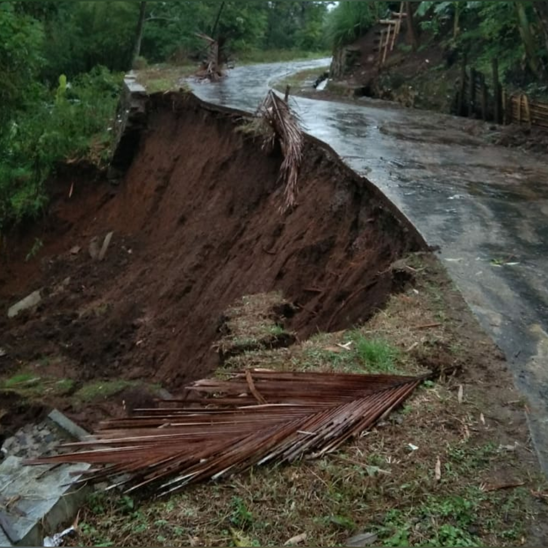 Menurut keterang saksi BD tidak ada korban jiwa,namun jalan tersebut tidak bisa di lalui oleh roda 4 dan roda 2.
