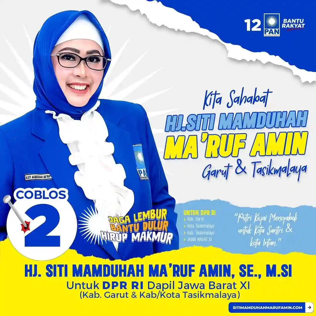 Garut, mediagempar.web.id- Caleg DPR RI PAN Jabar XI Hj. Siti Mamduhah Ma’ruf Amin, SE,M.SI. Setelah melalui masa kampanye dan berakhir dimasa tenang selama kunjungan-ku jungan di dapil Jabar XI baik di Kabupaten Garut, Kabupaten Tasikmalaya, dan Kota Tasikmalaya, melakukan konsolidasi penguatan-penguatan di tubuh tim bawah, kemudian tim di bawahnya melakukan konsolidasi dan penguatan juga hingga hari pemilihan umum tanggal 14 Februari nanti.