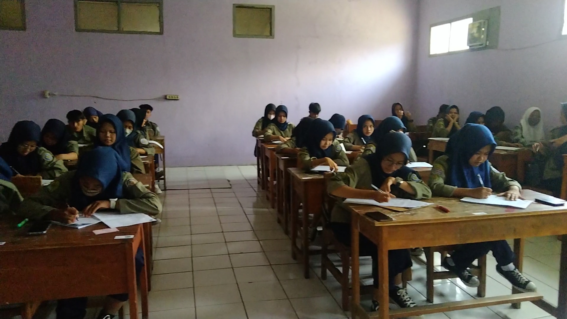 Garut. mediagempar.web.id-Selama 6 hari pelaksanaan PTS peserta didik nampak bersemangat dalam belajar dan mengerjakan soal yang sedang diujikan. Kegiatan ini pun berjalan lancar sesuai dengan jadwal yang telah ditentukan. Untuk menunjang ketertiban peserta PTS di dalam setiap ruangan terdapat satu guru pengawas dan mengkombinasikan dua jenjang kelas yang berbeda membuat kegiatan PTS semakin tertib dan kondusif.