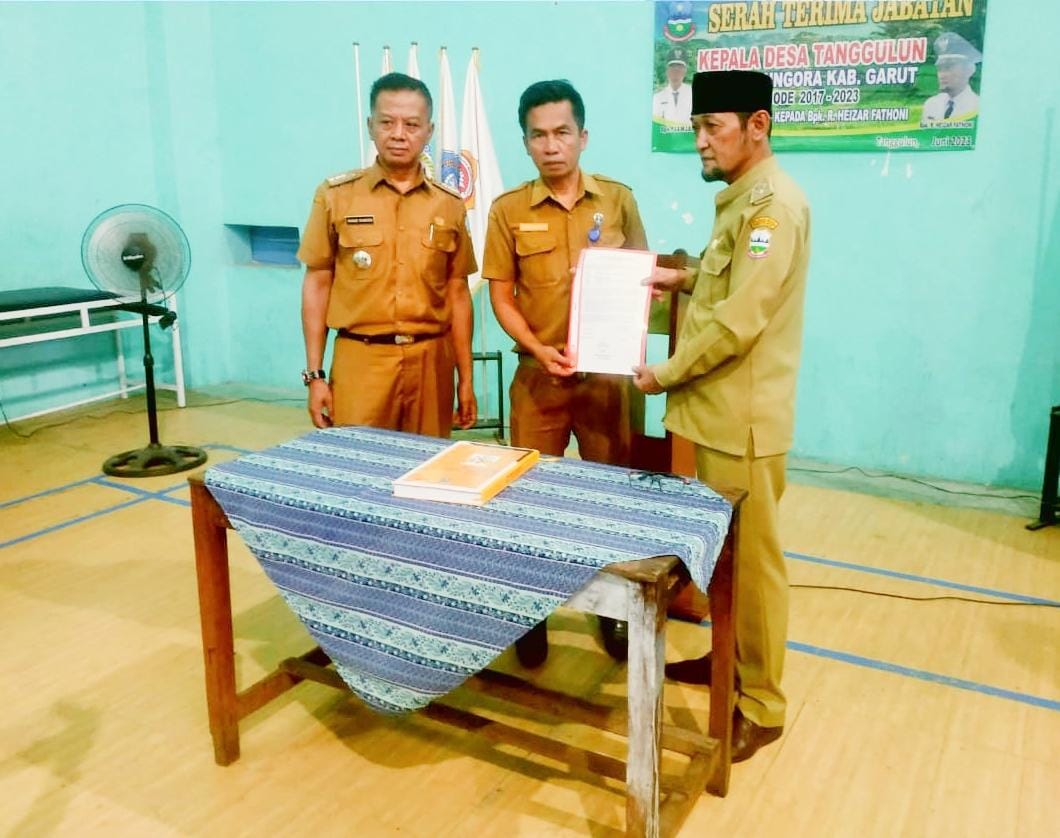 Serah terima jabatan Kepala Desa Tanggulun, Kecamatan Kadungora, Kabupaten Garut, berlangsung aman dan tertib.