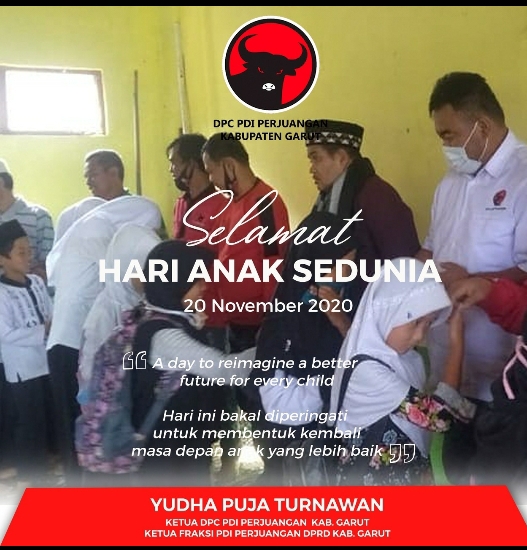 GARUT, mediagempar.web.id. Tepat setiap 20 November, diperingati Hari Anak Sedunia. Tahun ini hari dimana bertujuan untuk membayangkan dan membentuk kembali masa depan semua anak. Demikian dikatakan Ketua Partai Demokrasi Indonesia ( PDI) Daerah Garut Yhuda Puja Purnawan.