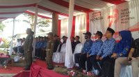 Upacara penurunan sang saka merah putih dalam rangka peringatan HUT Ke-78 Kemerdekaan Republik Indonesia yang dipusatkan dilapangan Jaya Bhakti Kamis Sore berjalan rapi dan lancar. (Fathan)